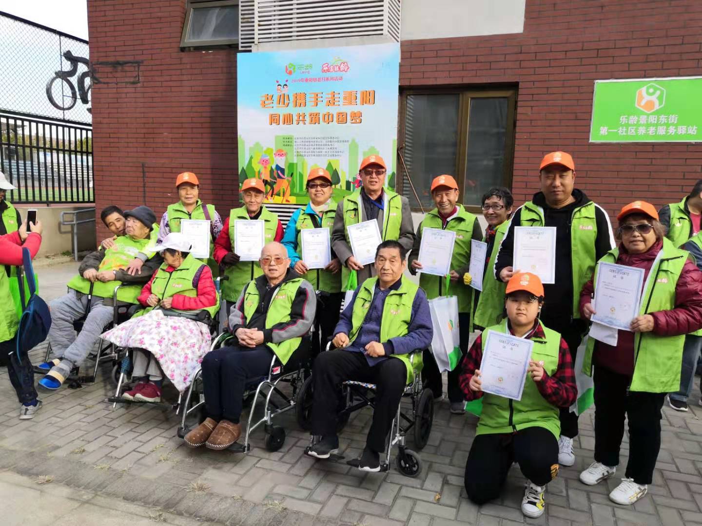 2019年10月26日,2019年乐享银龄“老少携手走重阳 同心共筑中国梦”活动在乐龄各街道驿站社区内圆满举办。本次活动由北京市石景山区乐龄老年社会工作服务中心主办,得到了北京市石景山区社会工委区民政局的大力支持,本次徒步活动在乐龄各家社区养老驿站分批进行,参加徒步活动的老人与他们的家人、众多志愿者、爱心企业以及乐龄的全体工作人员共计500余人同心共筑中国梦,老少携手走重阳。