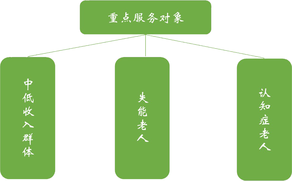 乐龄模式的重点服务对象为中低收入的群体。旨在解决大多数群体的社区养老问题,特别是中低收入群体中失能、失智老人的社区养老问题,相比传统养老院与高端养老社区,乐龄能给老人提供不离家养老的温馨感受,运营模式也更加符合政策导向