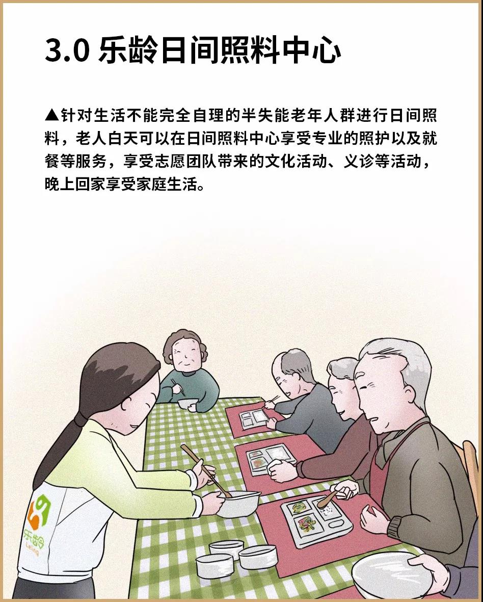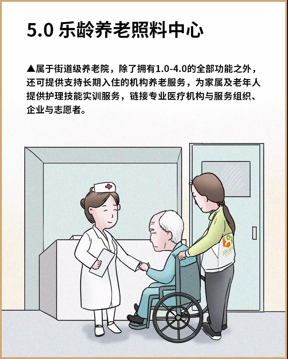 乐龄养老的产品包括五种类型:助老圈、益家园、日间照料中心、社区养老驿站、街道级养老照料中心。